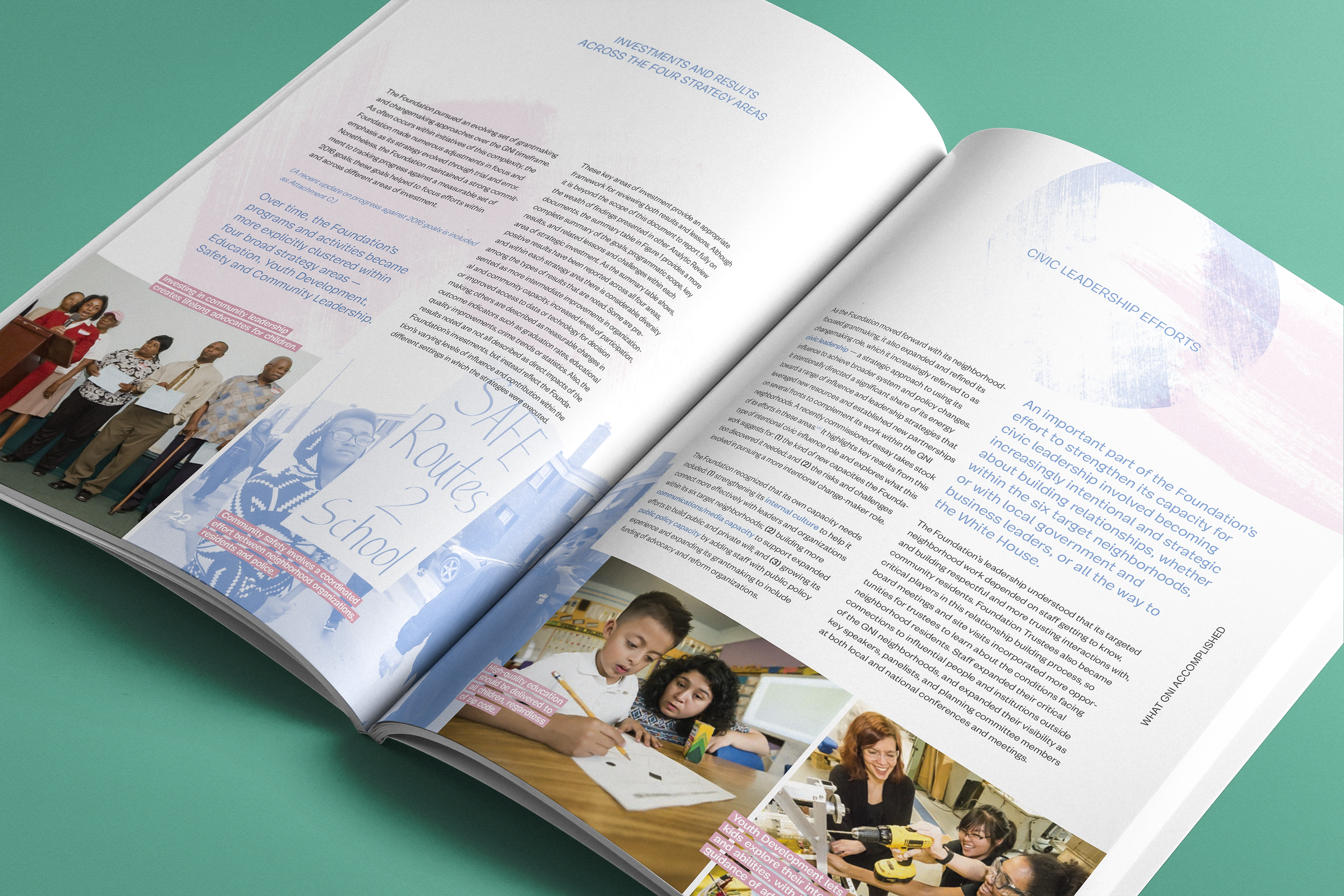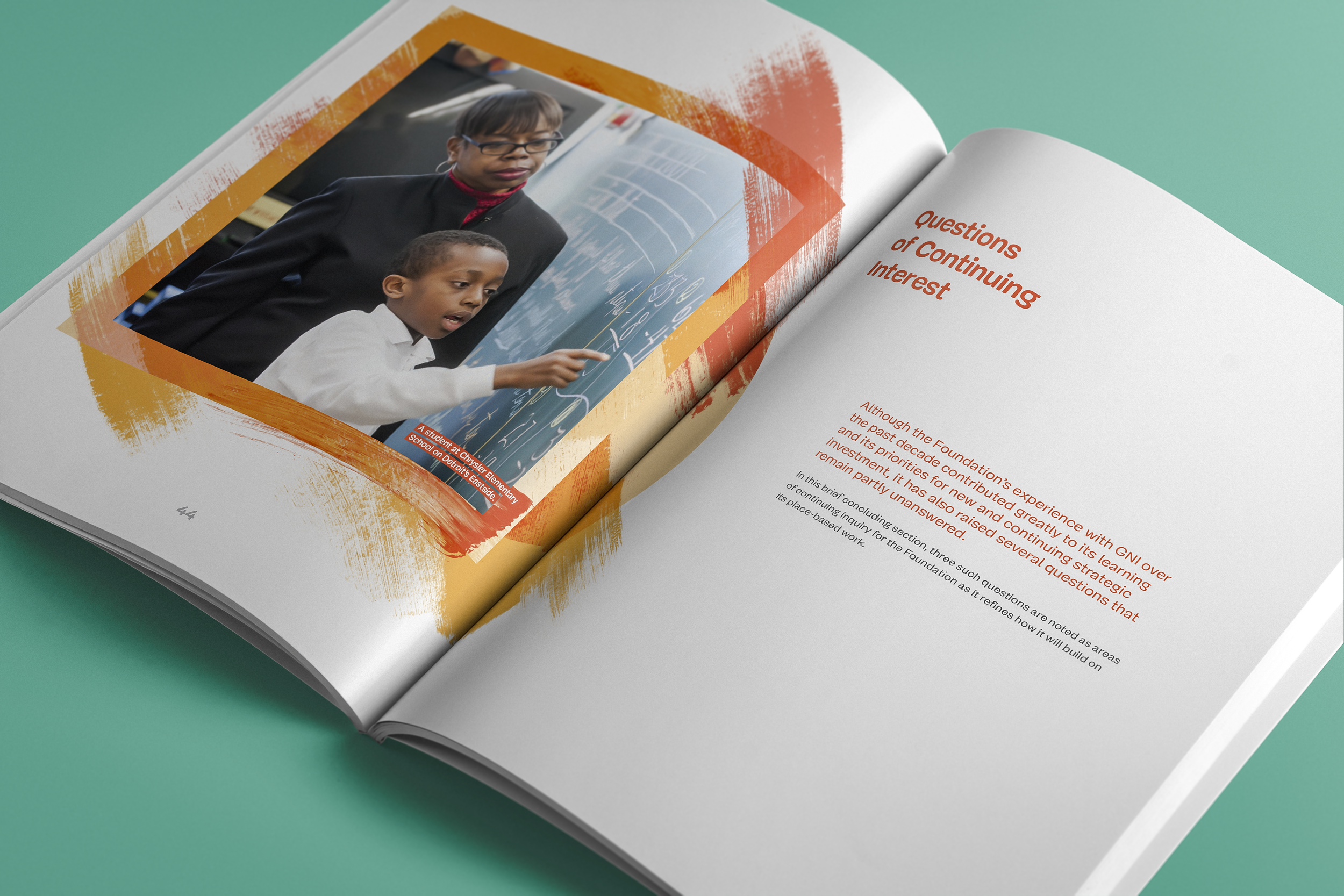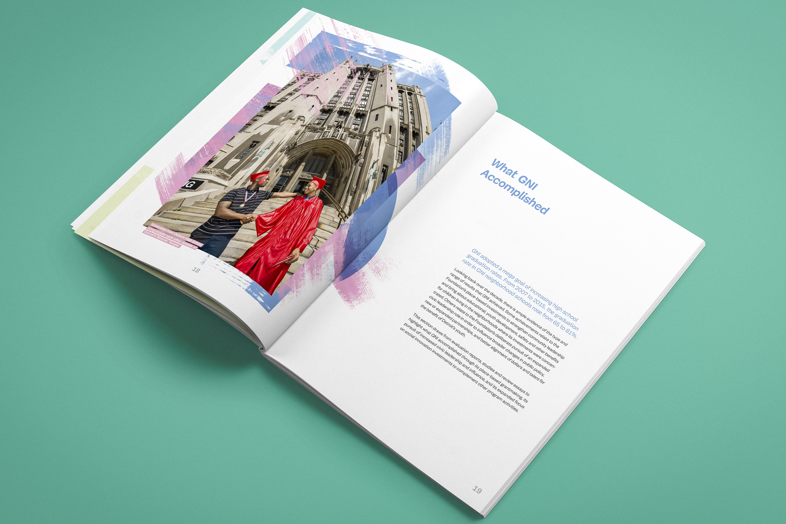 In 2016, the Foundation asked us to help give form to the GNI's numerous data visuals, stories, and insights. With the support of its team, we embarked on a year-long process that influenced the design of the Analytic Review, its work, and the mechanisms that would make its results available to local and national audiences. The finished document captures a decade's worth of investments in communities where Detroit’s children live and learn.