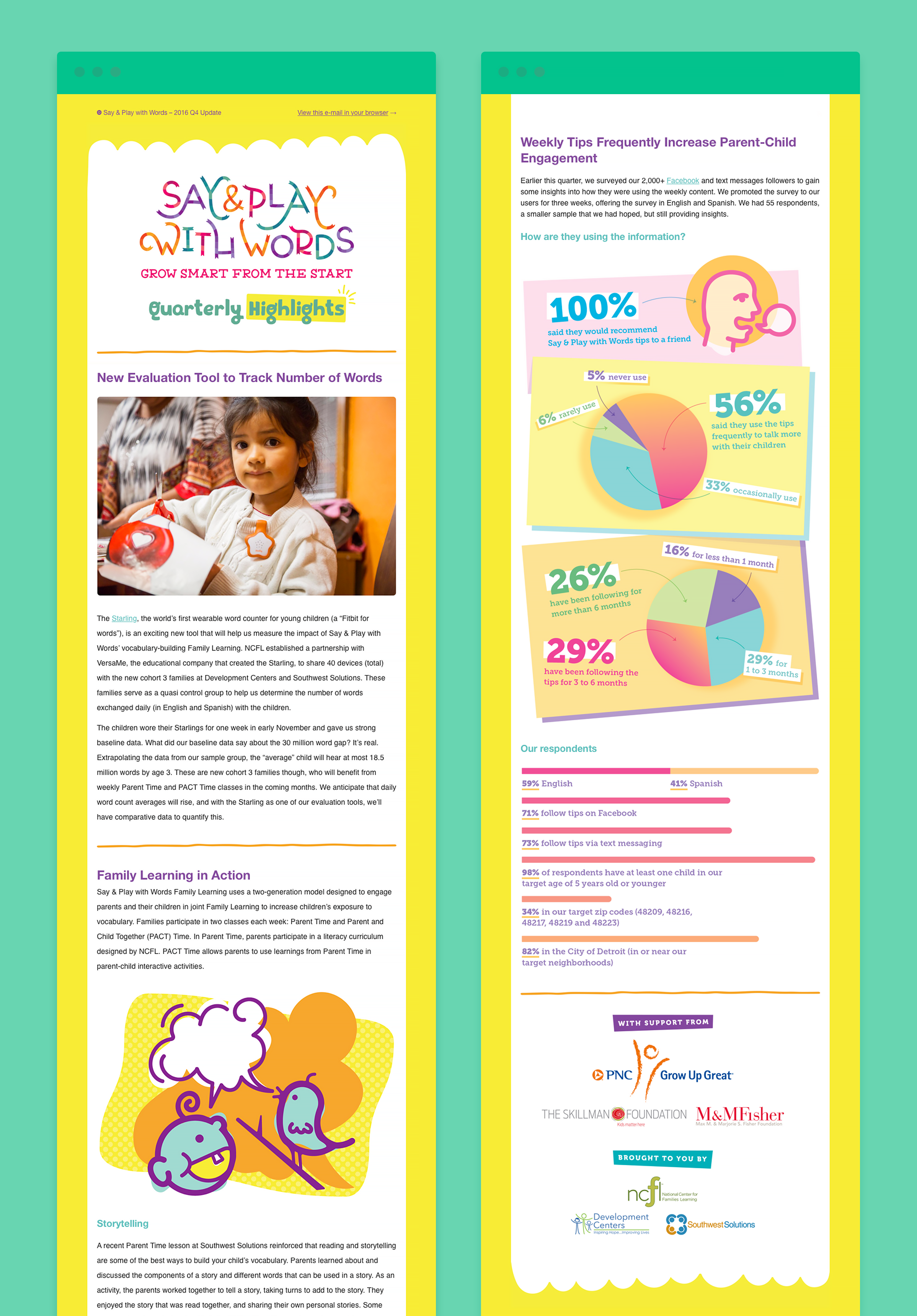 The Say and Play with Words initiative was born from the desire to raise awareness about and increase parents’ and caregivers’ skills to support their child's vocabulary development and on-going achievements. We worked with early childhood development-focused consultancy EarlyWorks and leveraged design to help bolster the campaign's visibility.